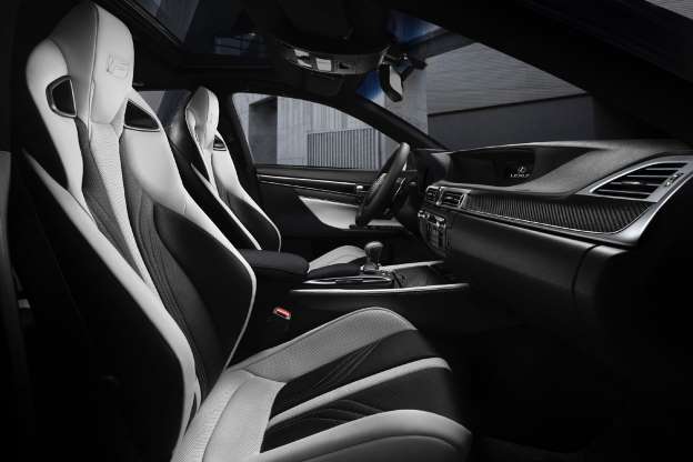 除了與RC F搭載同一具5.0升V8引擎外,全新GS F在車室內也同樣以多處的碳纖維飾板來彰顯其性能化定位,而頭枕處附有「F」浮雕字樣的雙前座桶型座椅,也是與RC F相同的專屬配置。