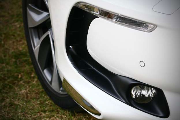好,當DS 5放在眼前,沒有人,不可能有任何車迷目光不會為之緊緊吸引,因為這輛車的外觀設計實在太過特立獨行,但卻又莫名所以的美感獨具。當所有車廠都以少即是多…恩,至少「大部分」車廠是這樣的設計邏輯啦,但是來自法國的DS設計師卻擺明告訴你他們的美感絕非凡人所能企及,DS 5的輪廓線條用繁複至極來形容說真的一點也不為過,每一種弧度、每一個轉折都有故事可以敘述,但連結起來每一個角度、每一組構圖都擺明就是風光,烤漆鈑件、黑色鋼琴烤漆與鍍鉻組件的連結,在別人身上可能會是畫蛇添足,但在DS 5上頭就是相映成趣,別怪我偏執,這是民族美感經驗的累積,沒得學,只得欣賞。