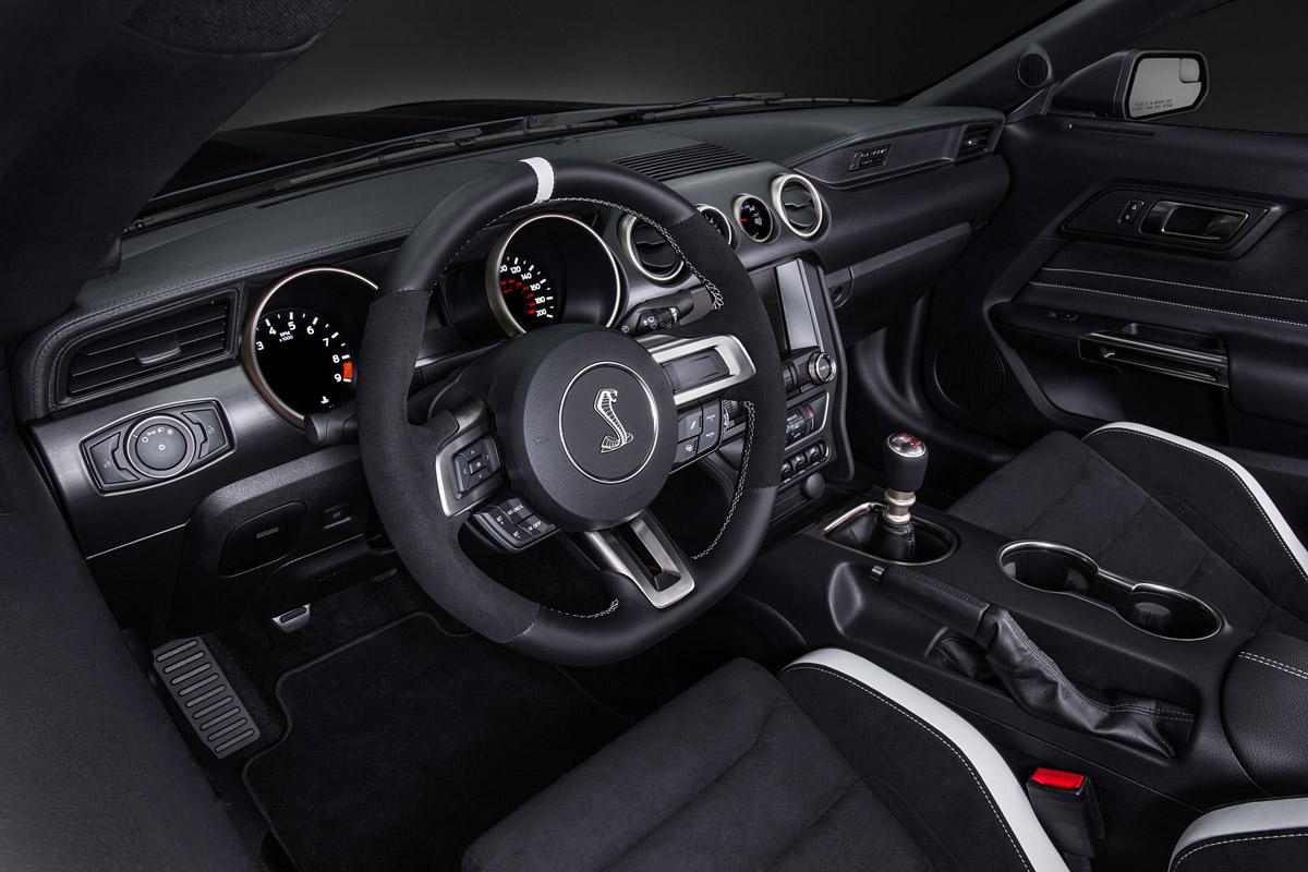 以賽道最快單圈成績為目標,Shelby GT350R Mustang輕量化的工程從底盤延續至座艙內,可讓賽道用車者一舉移除音響、空調、後排座椅、行李廂底板、地毯、倒車攝影、緊急用輪胎補胎劑與打氣機等裝備,排氣諧振器也同步捨棄,以追求更輕量的車身重量與更清晰的排氣聲浪回饋。而有道路駕駛需求的熱血車主,Shelby GT350R Mustang也同步提供Electronics Package供選配,提供實用的雙區恆溫空調、導航系統、具備七組揚聲器的音響系統與八吋觸控螢幕等豪華配備。