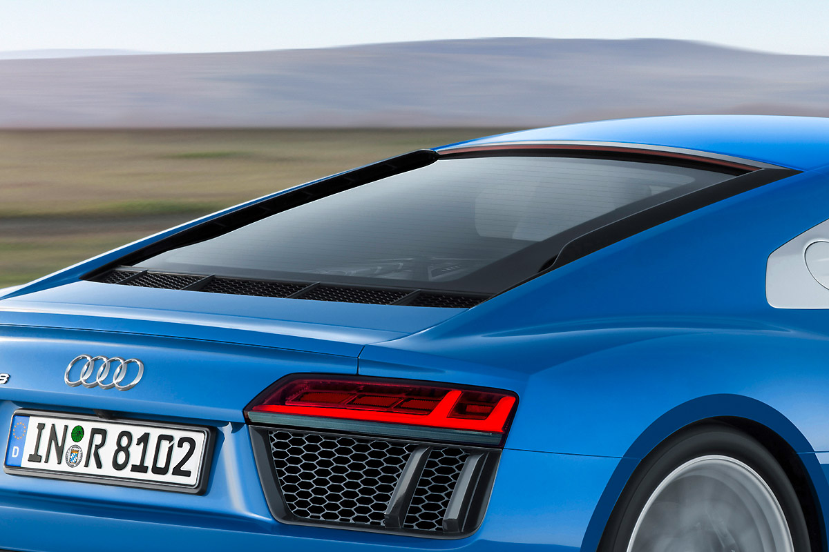 引擎蓋兩側更突出的鰭板,以及玻璃下方的進氣孔道,是新一代R8在空力上新增的設計之一。