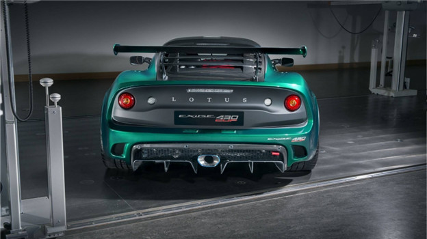 同時全車的空力套件也重新設計,在極速行駛的情況下共計能產生220kg的下壓力,特別是車頭處的空力設計,能較 Exige Cup 380 的款式產生更多的力道,前後下壓力比例從 36% 提升至 45%,如此以帶來更精準的轉向效益,而包含輪拱、側裙、後分流、大型尾翼都各有其用,如此以保證該款羽量級的跑車,能在高速行駛下維持穩定的操駕反應。