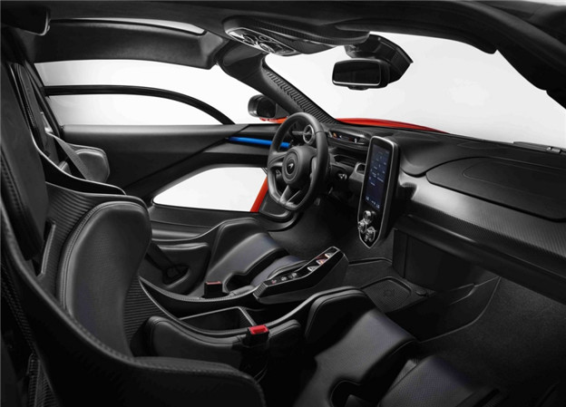 至於車室內部仍然維持追求輕量化的極簡風格,首見於 720S 的雙模式翻轉儀表板能讓駕駛擁有最大視野,其餘行車資訊則由中控台上的大尺寸螢幕負責顯示,Engine Start/Stop 按鍵、Race 模式按鍵以及車窗升降開關都被安裝在頂篷上,中央鞍座只有 PRND 排檔按鈕,緊湊佈局只為減少不必要車重產生。在這樣的邏輯下,Senna 「僅存」的置物空間只剩下座椅後方,容量僅能放下兩頂安全帽以及賽車服。