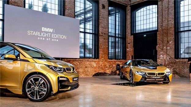 BMW 本次推出的 i3/i8 Starlight Edition ,是在標準版車型上,採用特殊的塗裝技術打造的限量特仕車;其中塗料中摻入純度達 23.75 K 的黃金粉末,而為了凸顯黃金閃爍光耀的色澤,廠方在車身上反覆塗上四層漆面,最後一層更是藉由手工上色,確保每一絲細節都精準完美。