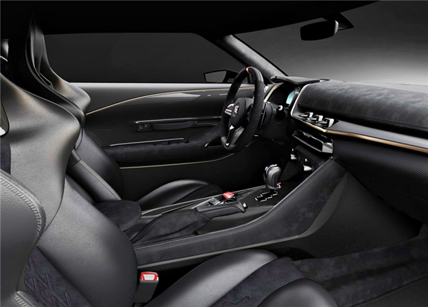 動力部分則延續了 3.8L V6 VR38DETT 雙渦輪增壓設定,其中改換上 GT3 賽車等級的渦輪增壓器,另外曲軸、活塞、中冷氣、點火系統、近排氣等皆一並強化,使其擁有 720ps / 79.5kgm 狂傲實力,遠勝於 R35 GT-R Nismo 的 600ps / 66.48kgm 提升相當有感;另外搭配 21 吋前 10J、後 10.5J 輪圈、BILSTEIN DampTronic 連續可調阻尼避震器、Brembo 前六後四煞車卡鉗與雙片式浮動打孔碟盤,一襲武裝上身絕對不容挑釁。