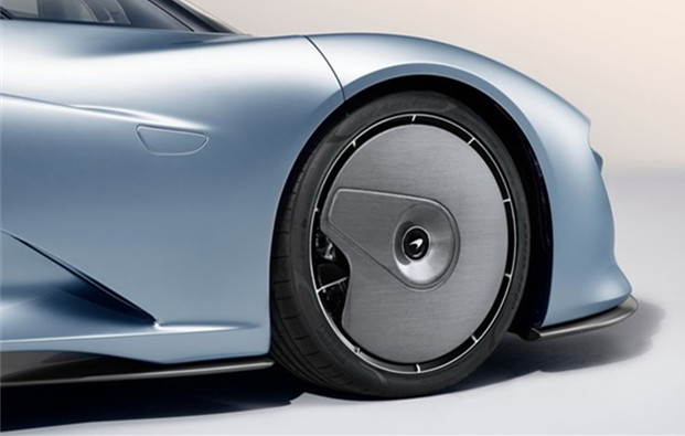 要成為頂尖GT超跑,McLaren從外型設計、材料科技著手,為創造極致空氣力學表現,Speedtail於車身任何角落皆是以滑順曲雕刻,前輪也以固定式碳纖維外蓋營造最佳導流效果,以整體車身外觀數據來看,其車身寬度比P1窄、車長卻有5137mm,使其可輕鬆承載三人又富有修長流線的視覺感;至於下壓力營造,則是交給長尾末端的「可變型彈性尾翼」,讓Speedtail確保低風阻之於也有可靠抓地力,造型也更優雅。