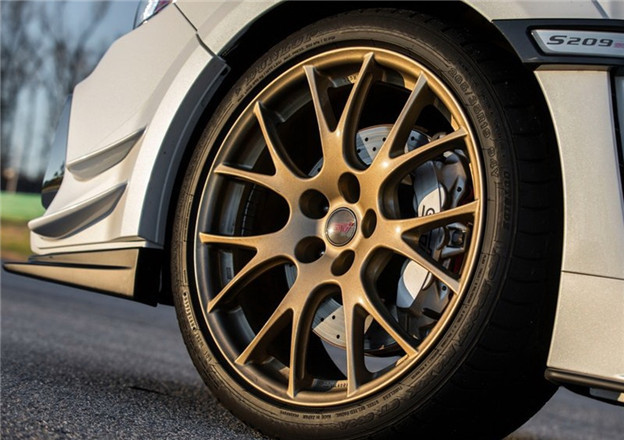 WRX STI S209不管是動力、底盤皆比日限S208還要更強!而外觀寬體設計當然也是本次重點,高性能部門由紐柏林24耐WRX STI冠軍廠車吸取靈感,讓S209整體寬度增加1.7英吋、來到72.4英吋水準,以便納入更大的265/35R19規格Dunlop SP SportMaxx GT600A夏季跑胎,而這條跑胎也是為S209專屬開發,最大側向抓地力超過1.0 g!