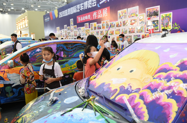 珠澳車展同期策劃舉辦了「童畫繪珠澳」少兒繪畫大賽暨頒獎典禮、兒童整車彩繪、電競賽車體驗、復古老爺車展示、後尾箱集市、吃貨星球美食列車等豐富的配套活動,給一家老小提供了全方位的休閒場所。其中,「童畫繪珠澳」少兒繪畫大賽暨頒獎典禮共邀請了近200組家庭到場,並於展會現場給獲獎小朋友們頒發了豐厚的獎品。小朋友們還在現場參與了整車彩繪活動,肆意揮灑自己的繪畫天賦;電競賽車吸引全場目光,電競愛好者排起長龍,挑戰速度與激情。