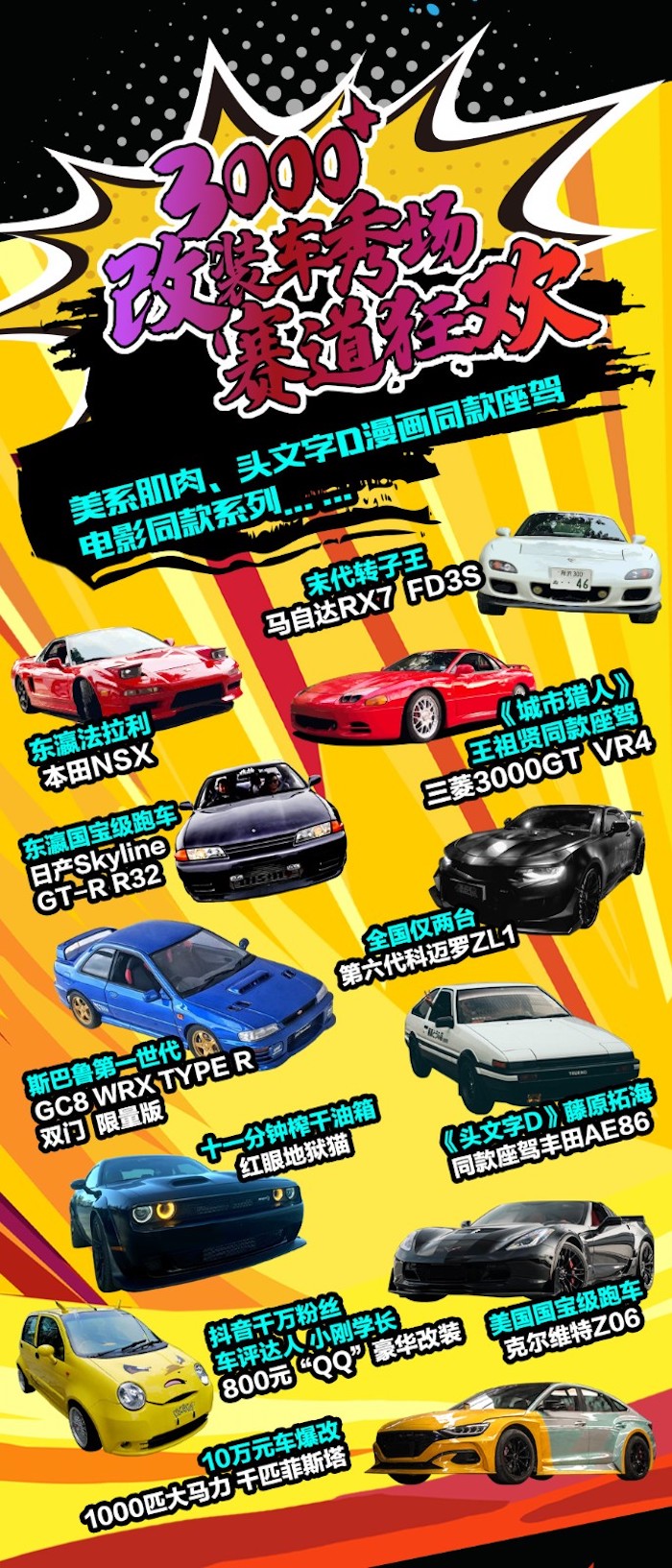 • 网红车小刚学长法拉利电瓶加持的800元QQ爆改、网红雪糕车长安小面包、工匠派10万元车爆改1000匹菲斯、西蒙神奇车库三辆网红车;