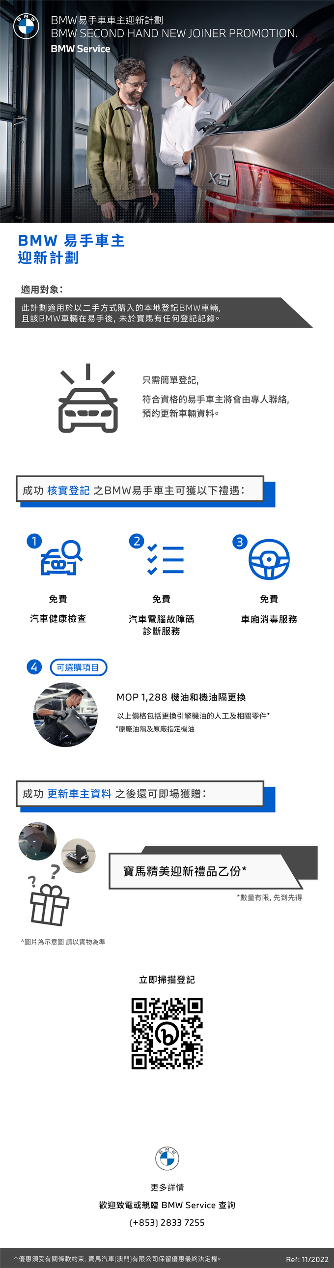 滿滿禮遇立即登記l BMW 原廠易手車主迎新計劃